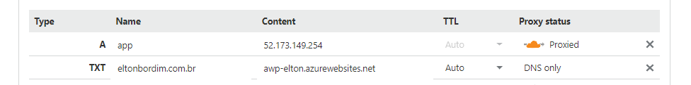 14 – Para um WordPress foi preciso ajustar as entradas CNAME A , e adicionar o domínio personalizado no Azure.