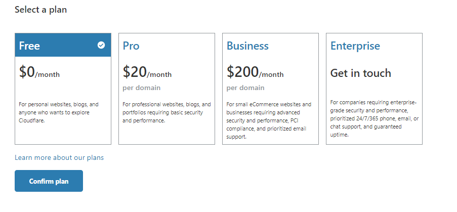 3 – No meu caso já coloquei o domínio, e agora vou selecionar o plano Free.
