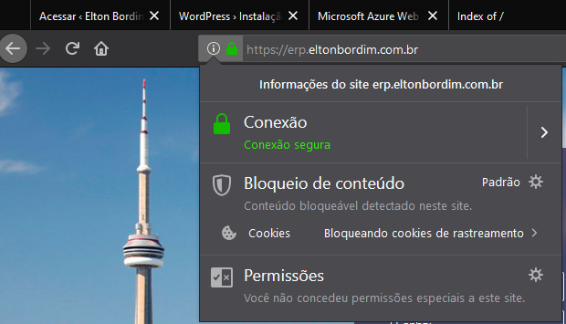 15 – Neste exemplo apontei para o IP de um IIS do Azure que responde um ERP no modelo tradicional, veja que o apontamento A aplicou o SSL e deixou minha conexão segura.