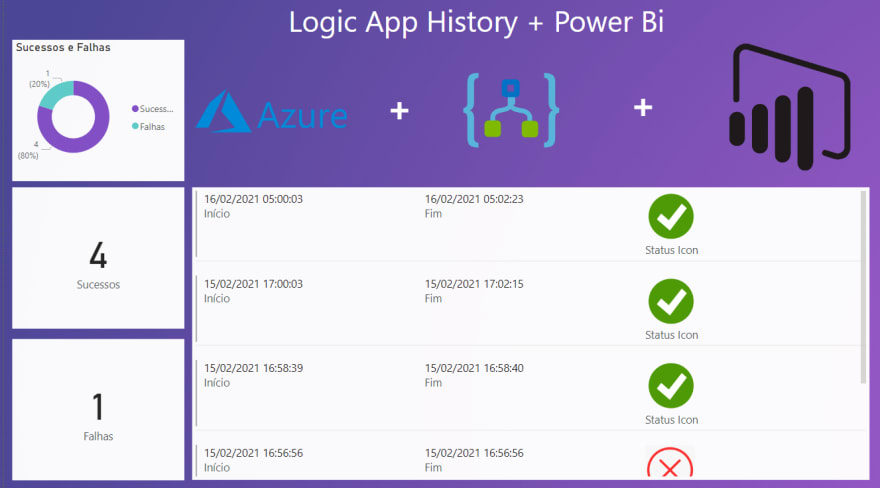 Nesse post vou mostrar uma solução para monitorar a atividade do logic app. A motivação é centralizar a leitura e monitoramento dos dados, visto que podemos ter vários processos preparando arquivos de forma automatizada e se algo der errado, pode passar despercebido. Além disso quero mostrar a integração das api’s do azure e isso pode nos trazer outros insights.