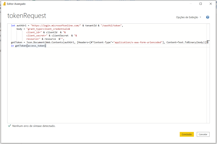 let authUrl = "https://login.microsoftonline.com/" & tenantId & "/oauth2/token",