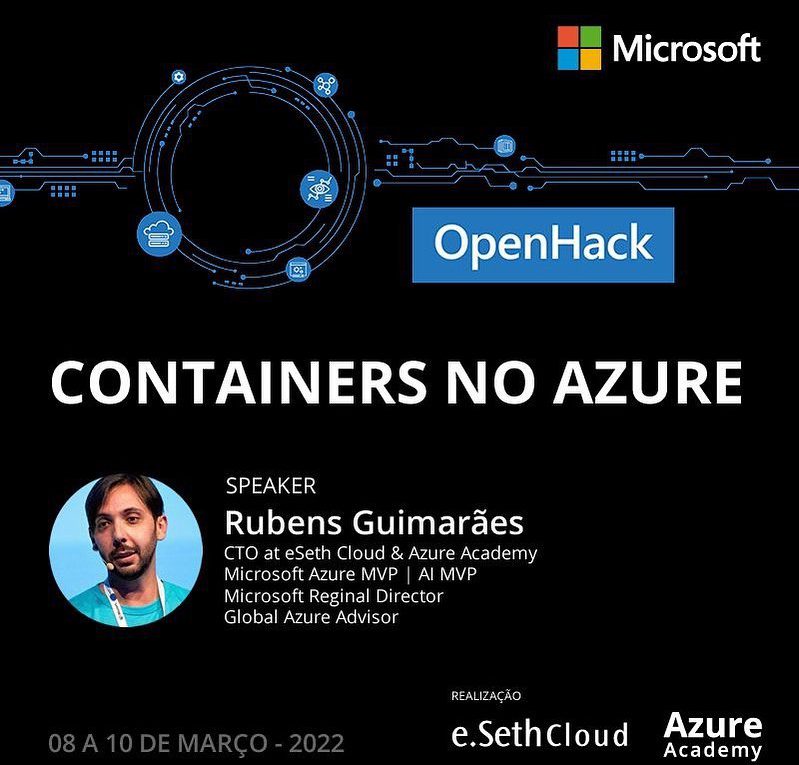 Continue lendoE nesta semana acontece o Microsoft OpenHack – Containers no Azure. Gestão de ponta a ponta em ambientes corporativos AKS.